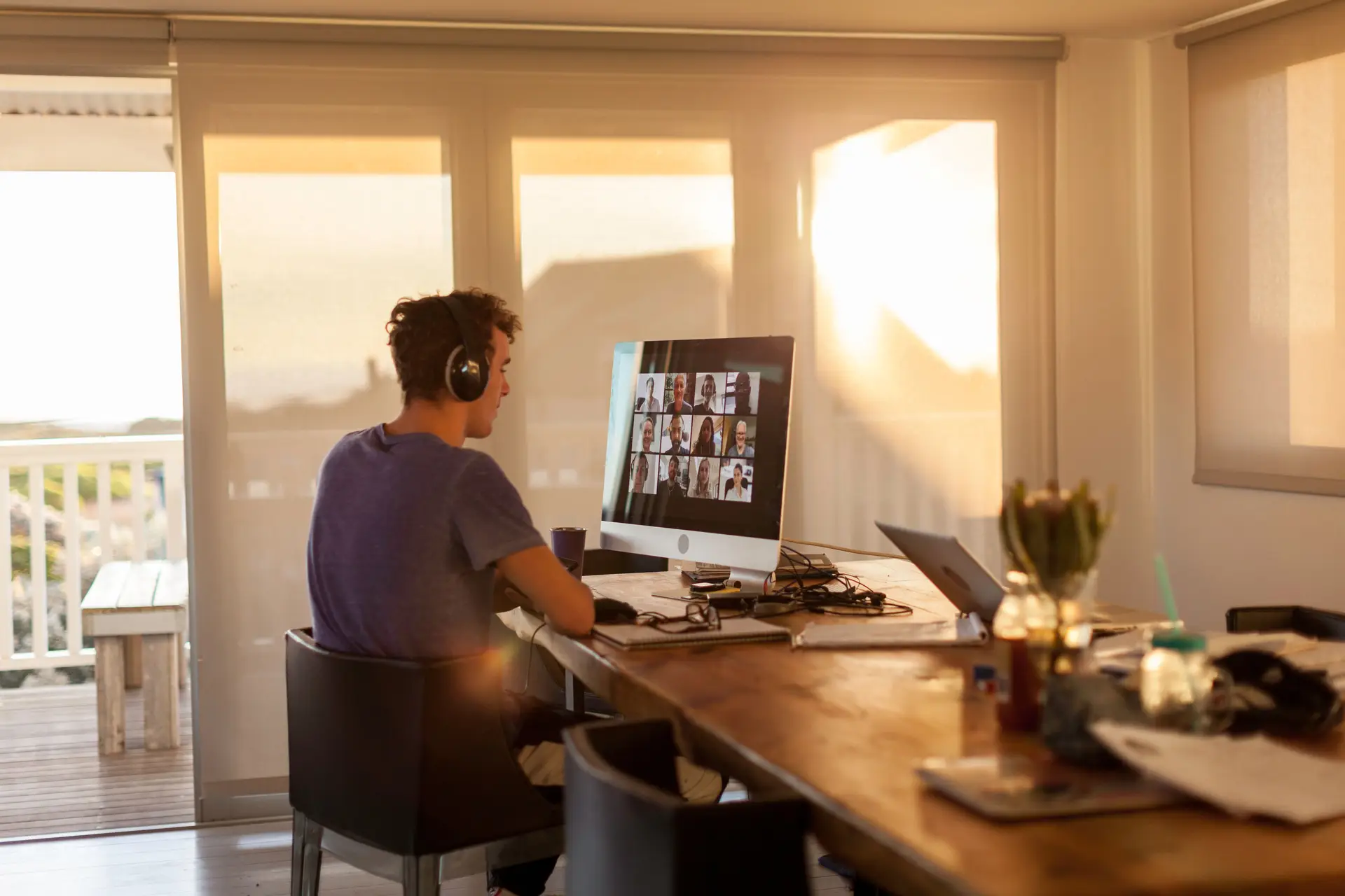 O teletrabalho não exige que saia como para o trabalho, mas exige um mínimo e ditam as regras de sociedade que em trabalho evite chamadas em que esteja presente de pijama, com um aspeto.